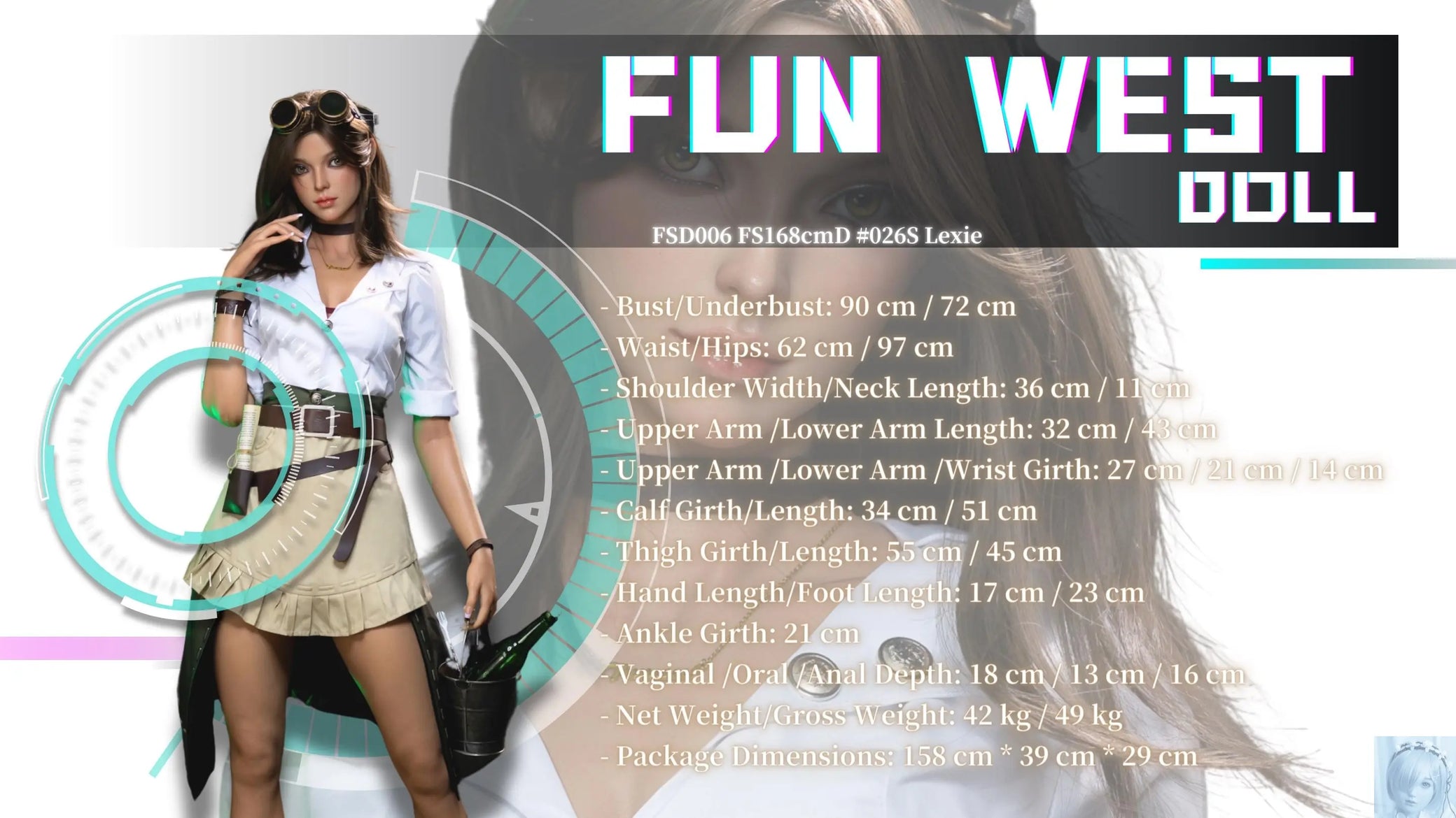 Funwest FS Series 168 D Cup Full Silicone Sex Doll Lexie with Real Skin Texture
