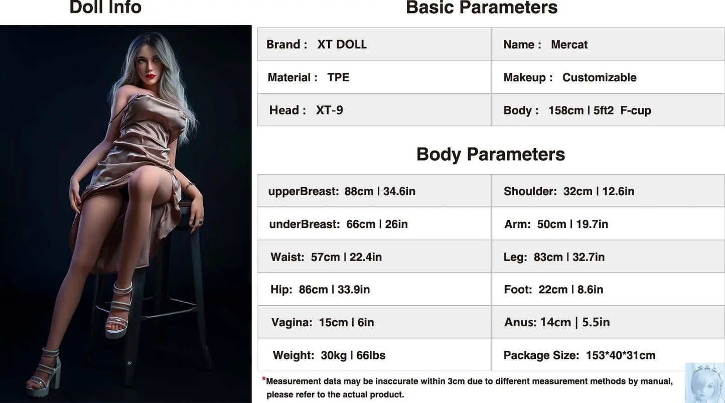 XT Doll 158cm 5ft2 F Cup Mercat TPE+Silicone Sex Doll